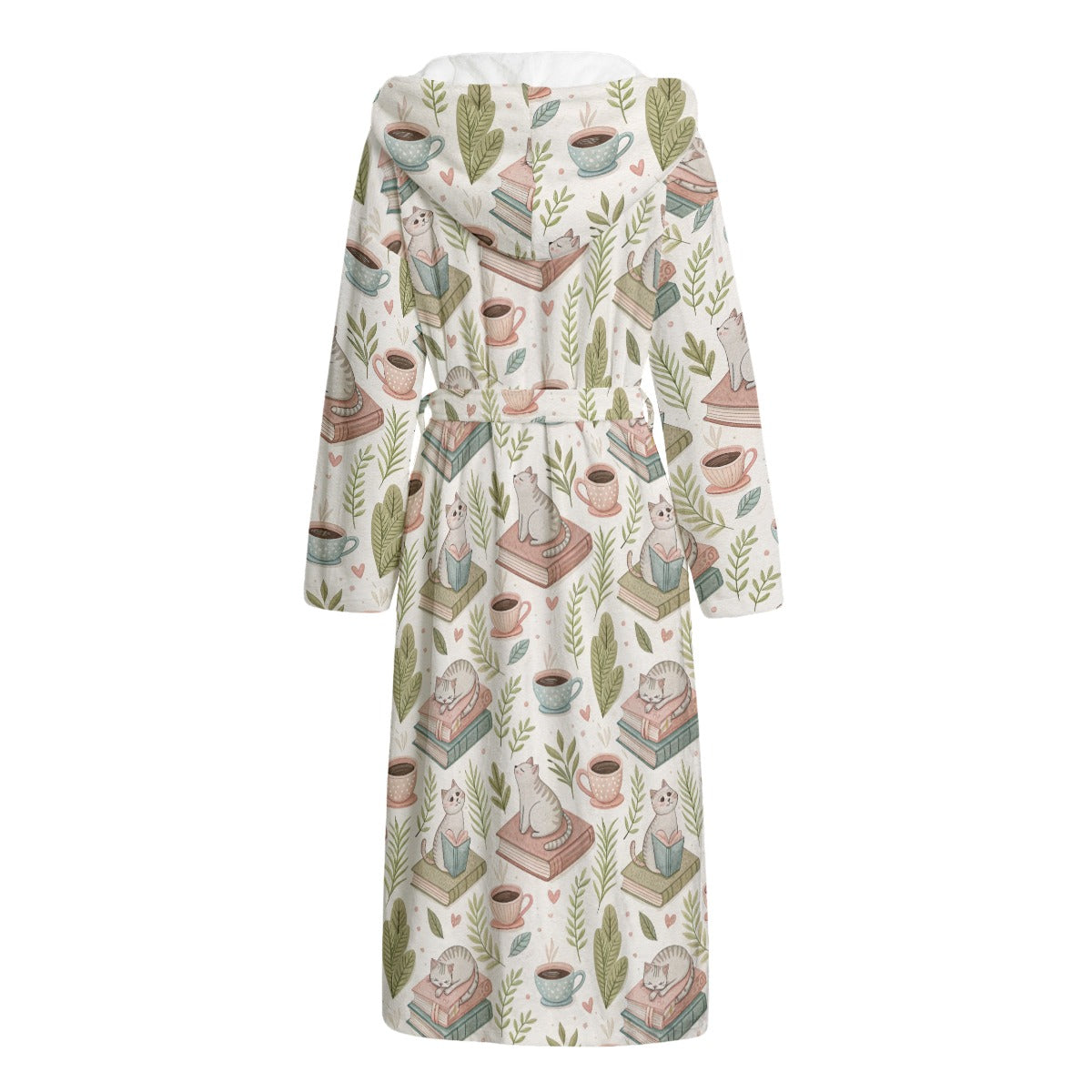 Books cats and coffee bookish All-Over Print Unisex Flannel Hooded bathrobe dressing gown robe