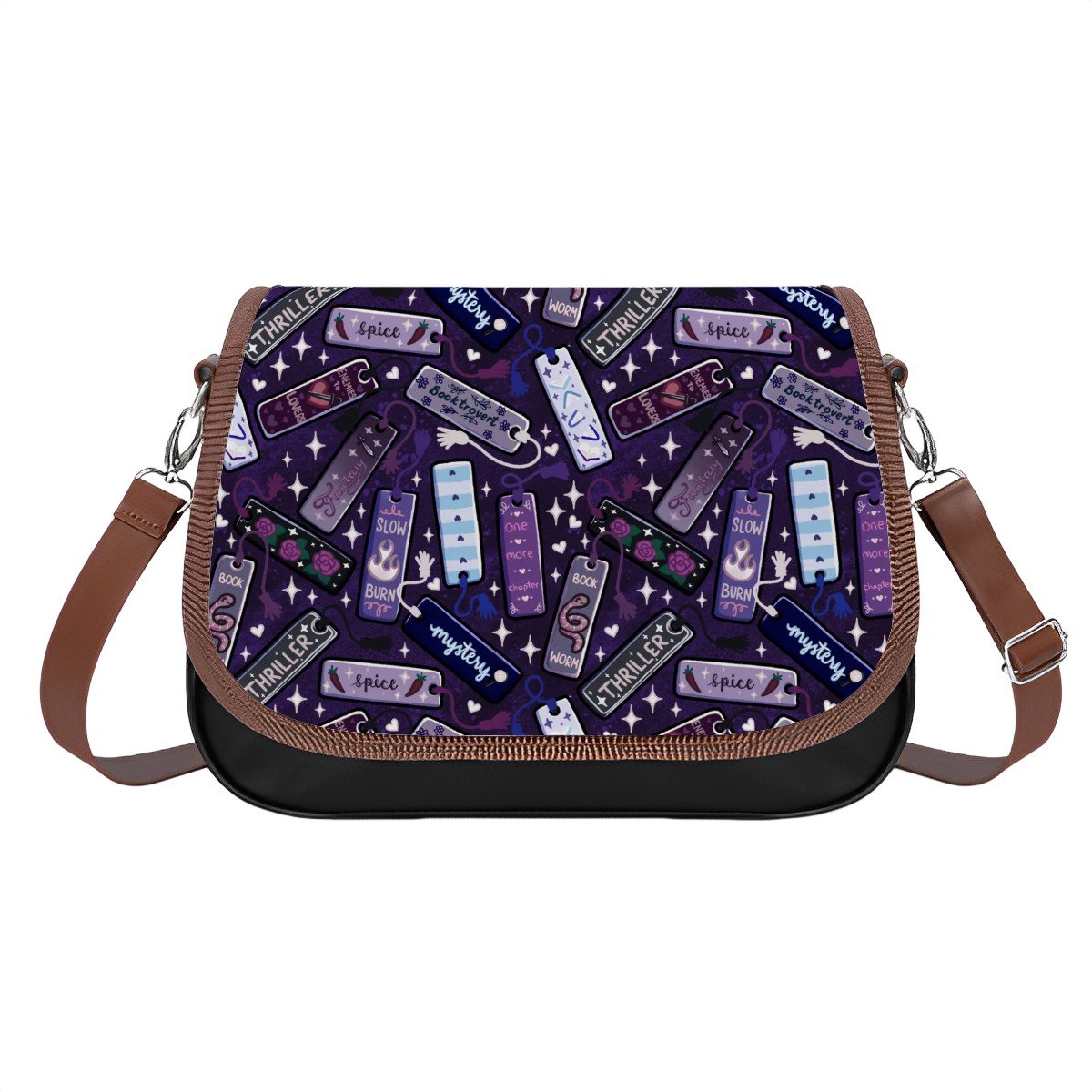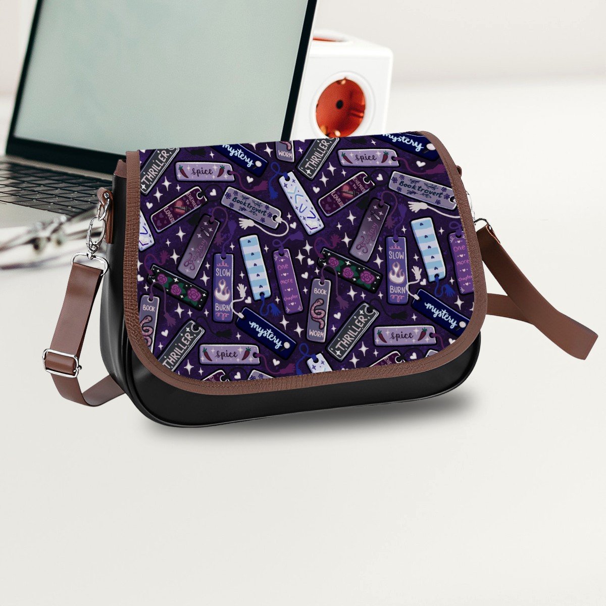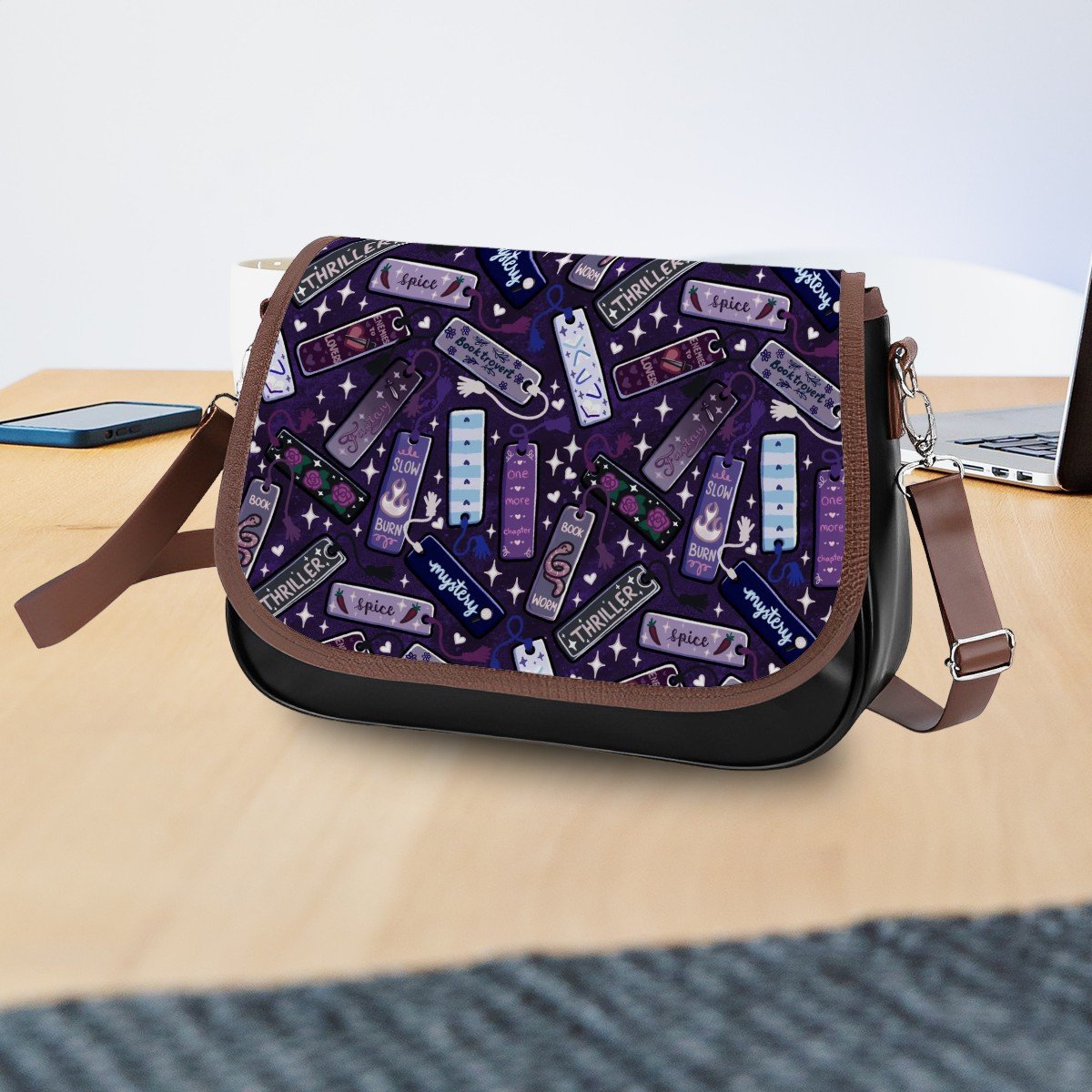 Bookmarks tropes and gentres vegan Leather Shoulder Bag bookish handbag