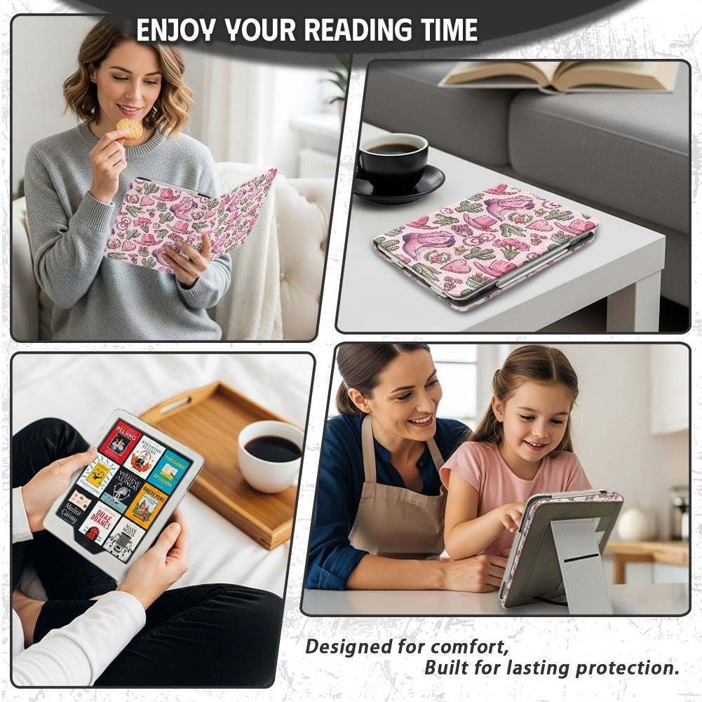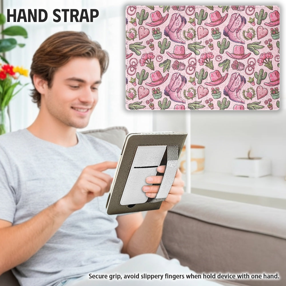 pink western PU cover for Kindle paperwhite 11th 12th gen vegan leather wallet style case