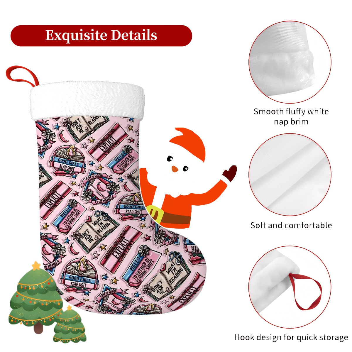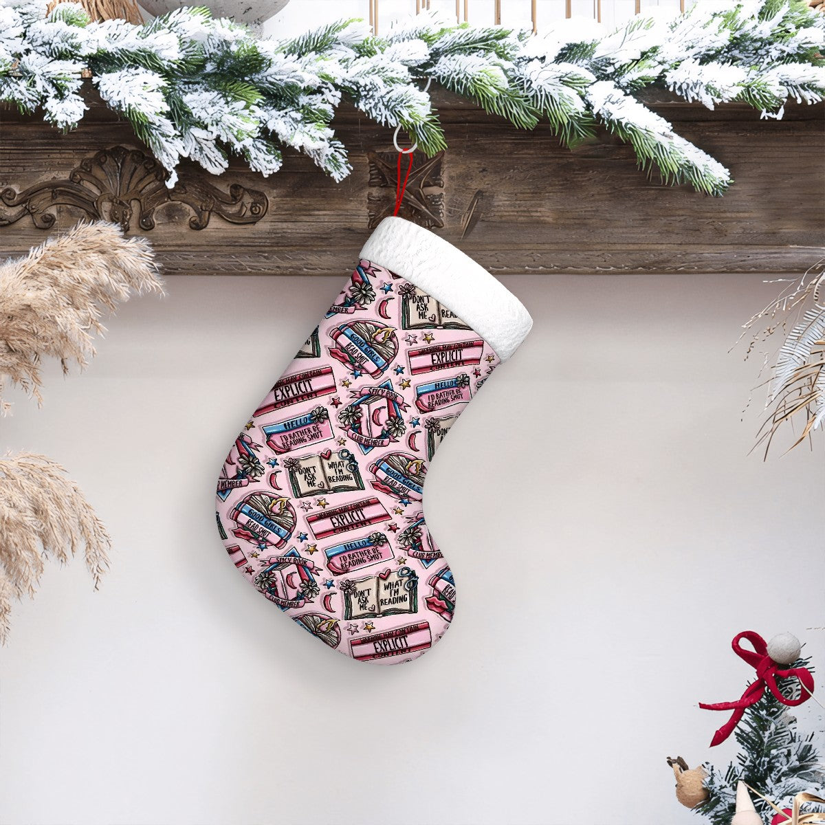 Bookish baby pink smutty tattoo style book lover Plush Christmas Stockings